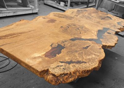 • Custom finishes available, including staining and epoxy resin infusions to enhance character.