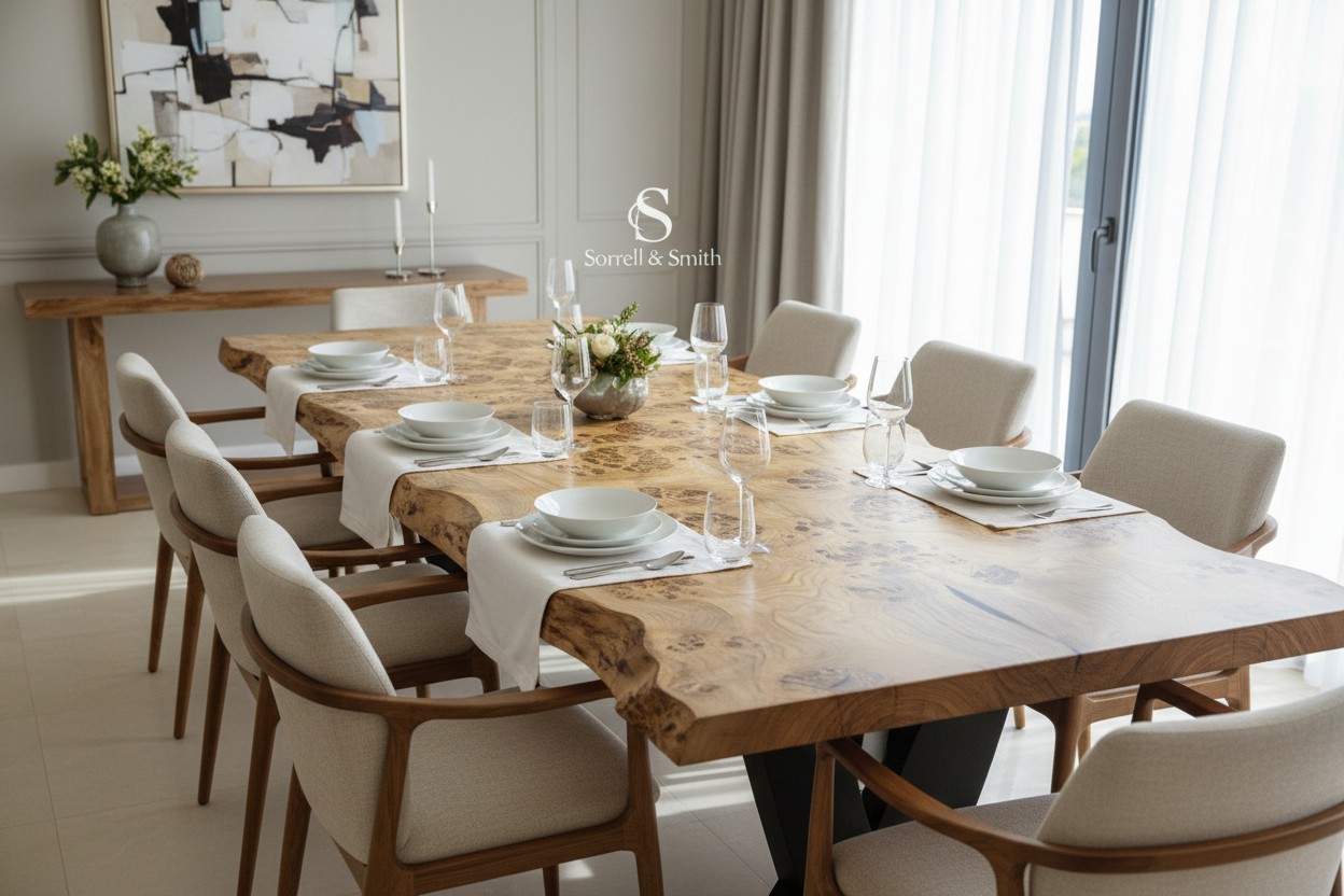 Luxury Live Edge Pippy Oak Dining Table – Handcrafted in the UK by Sam Sorrell.