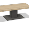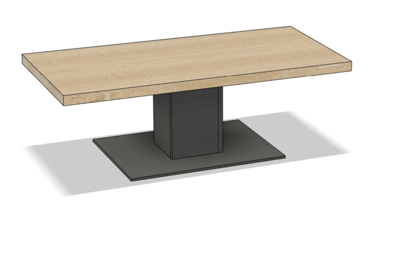 The Virelli includes both the solid oak tabletop and the solid steel plinth base shown in the images. The base is precision fabricated from heavy-gauge steel and professionally powder coated in matte black for a refined, durable finish.
